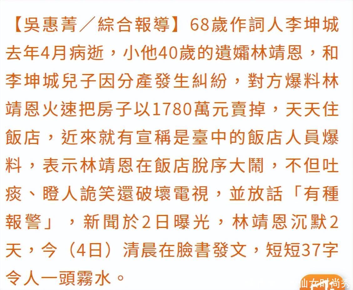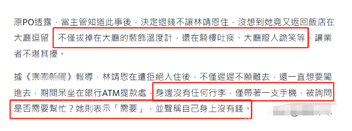 媒体看到这样的情况就前往盘考,林靖恩则是喝着水说,她当今仍是莫得钱了。