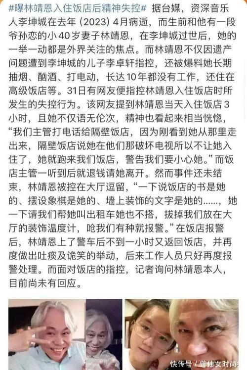 把柄李坤城的亲妹妹说,林靖恩在家里什么也不会作念,也不作念家务,不会洗衣服和作念饭,就连垃圾袋也不会扔。