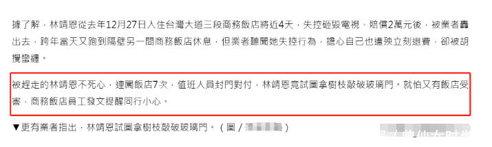 她在上个23月的时期,就在一个栈房里住了几天,但是却在栈房里跋扈的砸东西,但是砸东西就要补偿,是以她又补偿了1万块的台币。